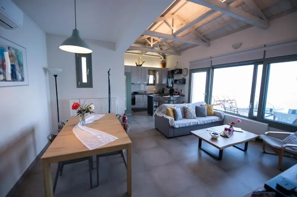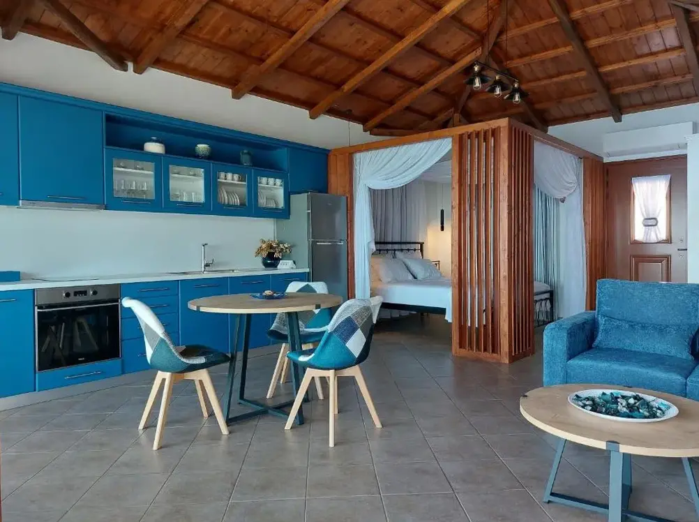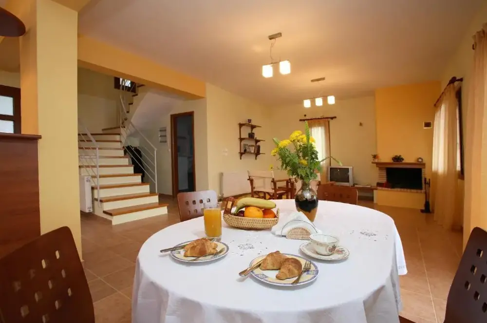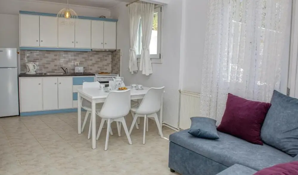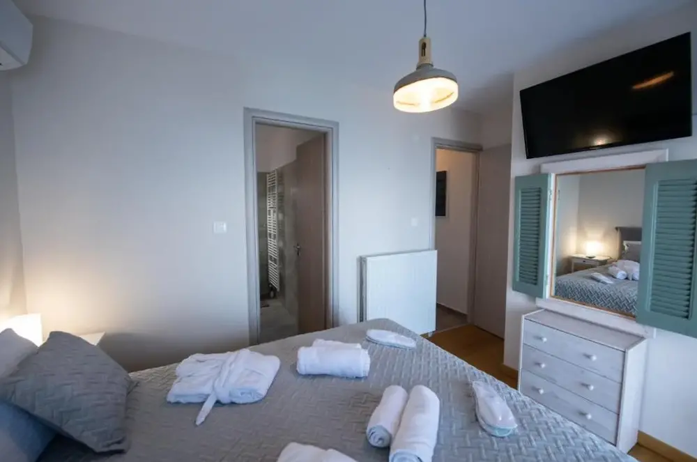 Villa Mavraki bietet eine moderne Unterkunft mit großzügigen Innenräumen in farbenfrohen nationalen Akzenten. Die Zimmer sind gut gelagert und verfügen über einen angenehmen Klimawechsel durch stete frische Luftströmungen, sodass auch bei hohen Temperaturen ein behagliches Ambiente entsteht.