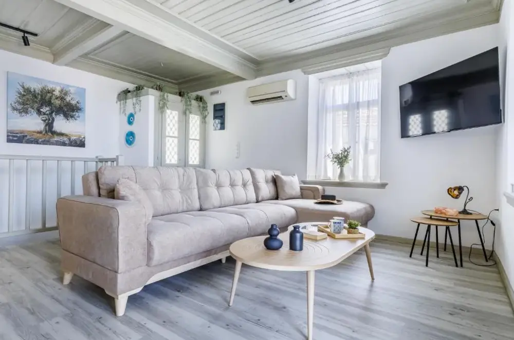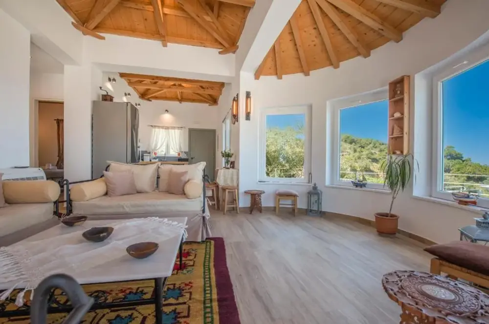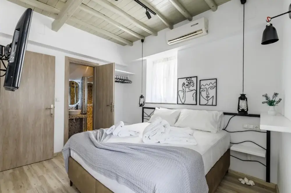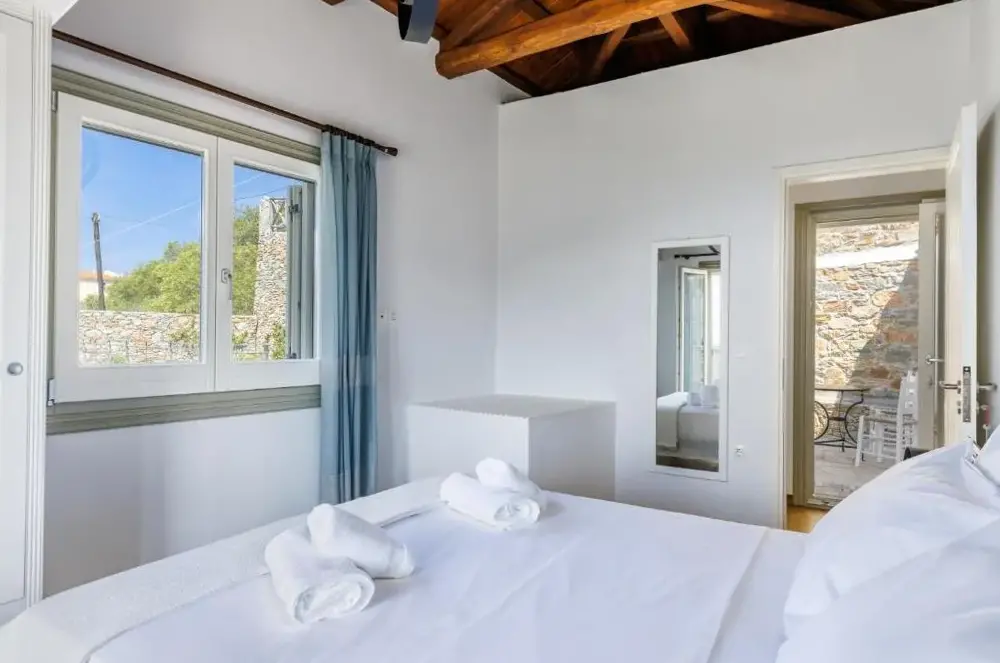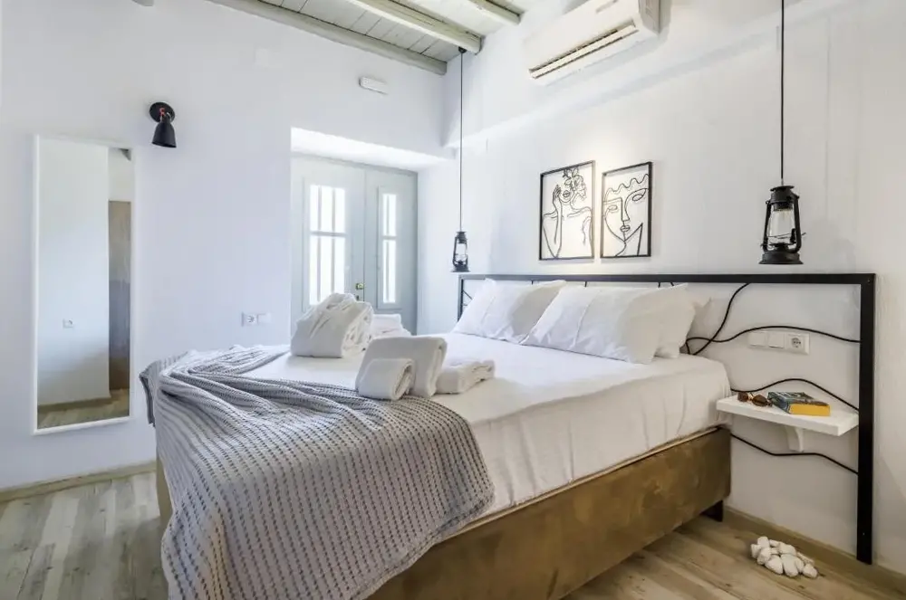 Villa Mavraki bietet eine moderne Unterkunft mit großzügigen Innenräumen in farbenfrohen nationalen Akzenten. Die Zimmer sind gut gelagert und verfügen über einen angenehmen Klimawechsel durch stete frische Luftströmungen, sodass auch bei hohen Temperaturen ein behagliches Ambiente entsteht.