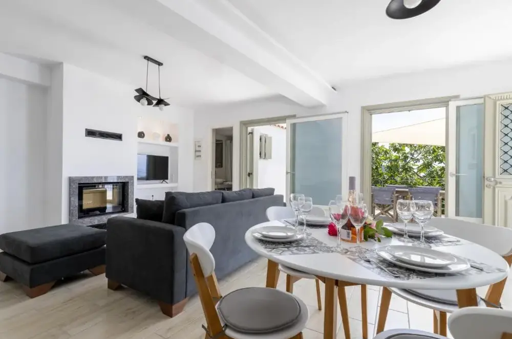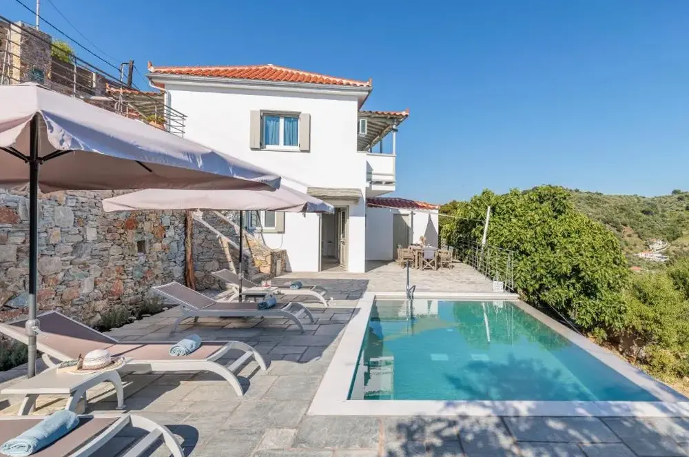 Weitere Informationen zu Villa RoseCherry's Home bietet eine gemütliche Unterkunft mit moderner Ausstattung und einer malerischen Lage in der Gemeinde Glossa. Das haus wurde positiv bewertet, da es sauber, hell und gut gestaltet ist sowie alle benötigten Annehmlichkeiten bereitstellt.