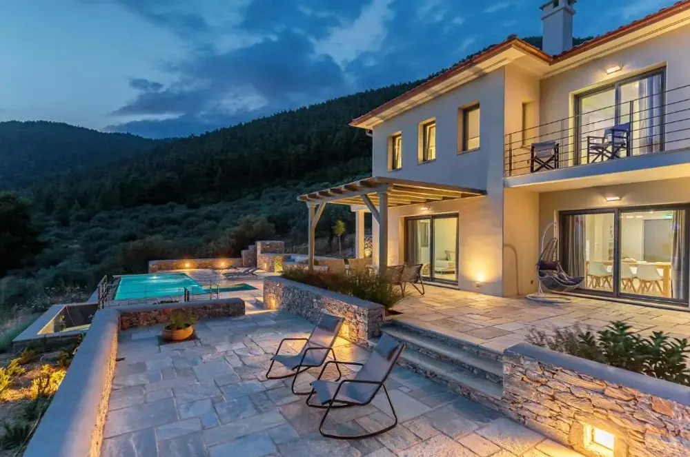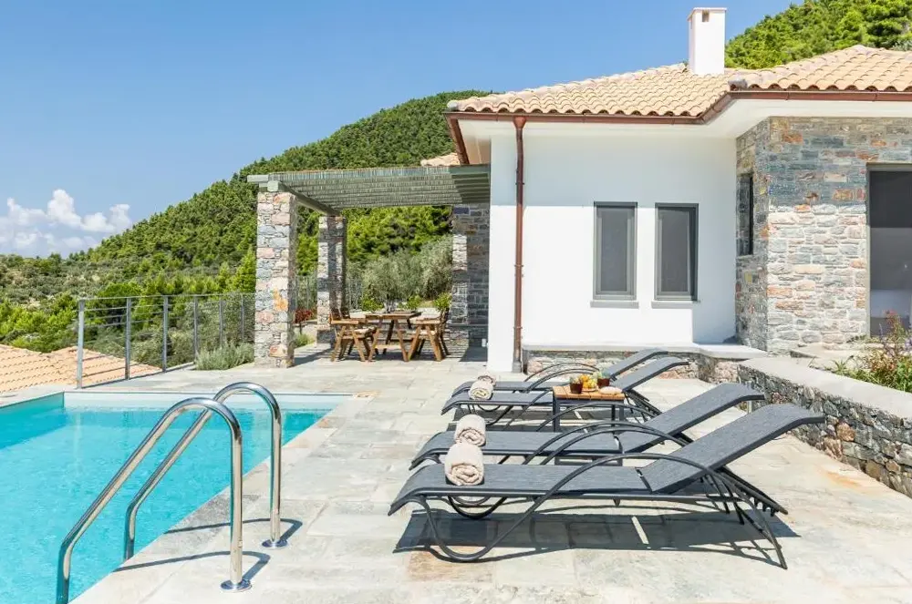 More information about By the seaElios Zen Villas offers a tranquil retreat in Elia, Skopelos, featuring an outdoor swimming pool and free parking. Guests can enjoy daily housekeeping services and access to family-friendly accommodations. The property provides room service and non-smoking rooms for comfort. Located near popular attractions like Armenopetra Beach (2 km away) and Kastani Beach (2.